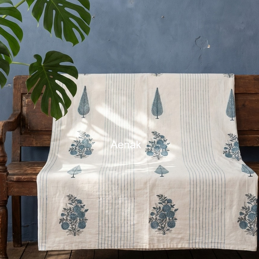 Blue Phool Boota Handblock Reversible Mulmul Cotton Quilt