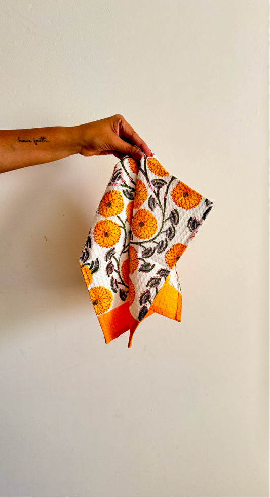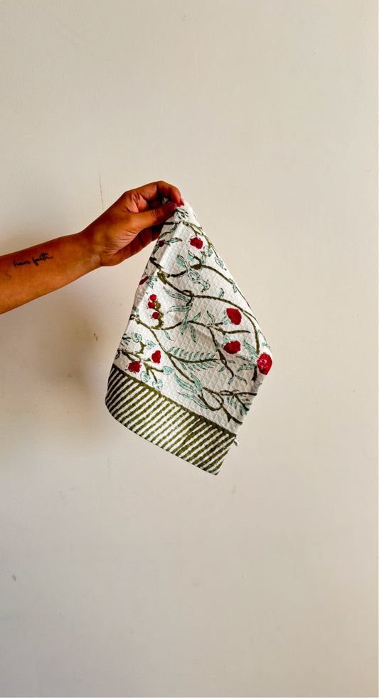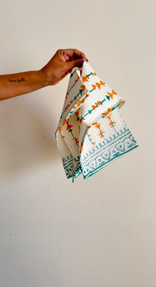 Handblock Printed Waffle Cotton Handtowels- Set of 2