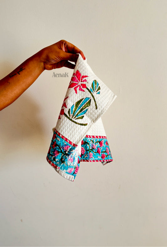 Handblock Printed Waffle Cotton Handtowel - Set of 2