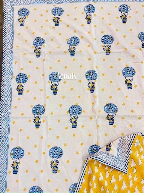 Blue Balloon Handblock Printed Reversible Mulmul Cotton Kids Blanket