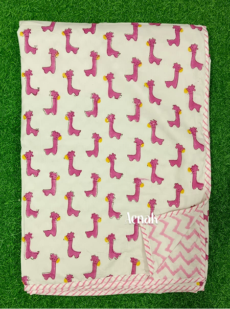 Pink Llama Handblock Printed Reversible Mulmul Cotton Dohar Kids Blanket