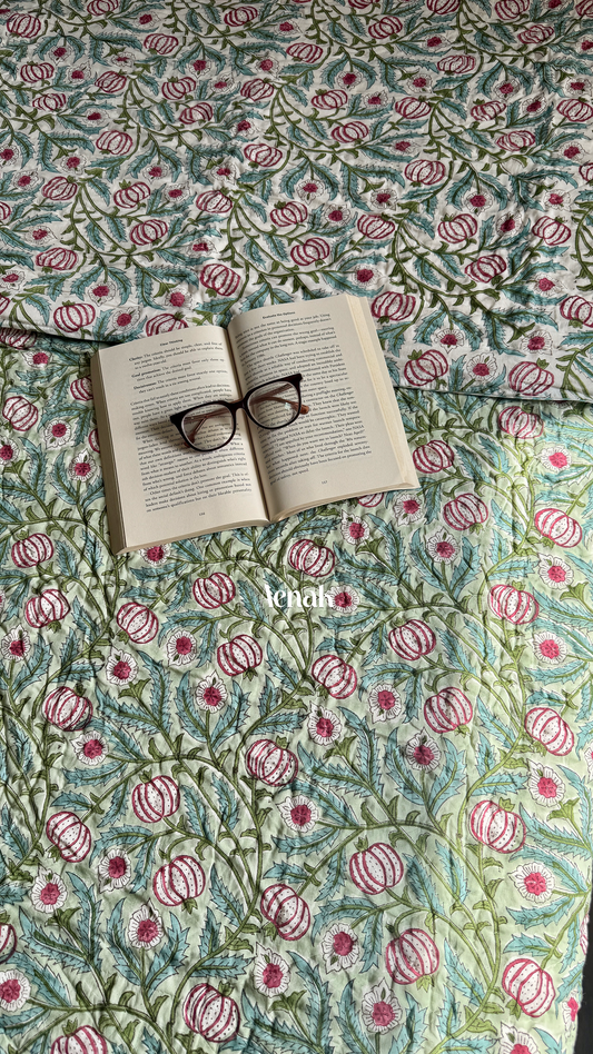 Red Anaar Handblock Printed Reversible Mulmul Cotton Quilt