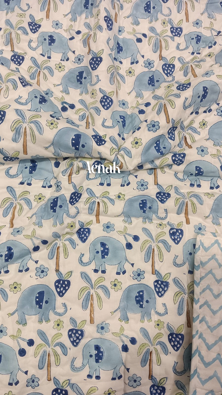 Blue Elephant Handblock Printed Reversible Mulmul Cotton Kids Blanket