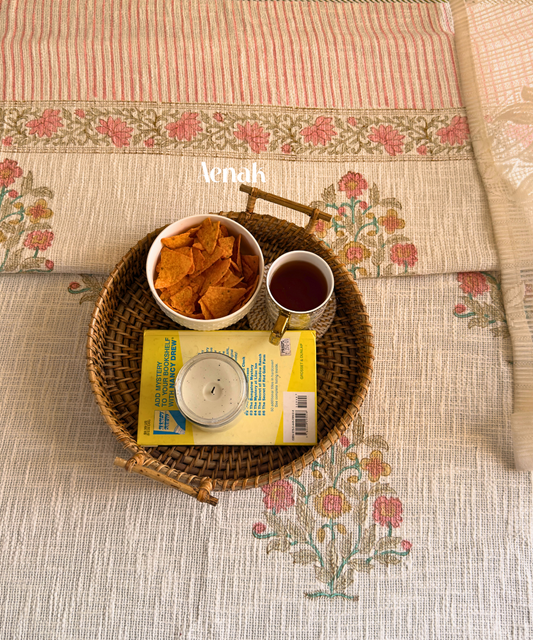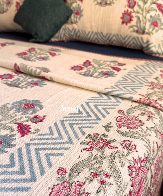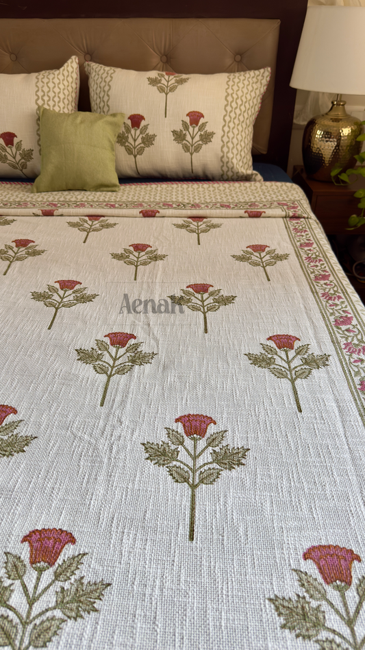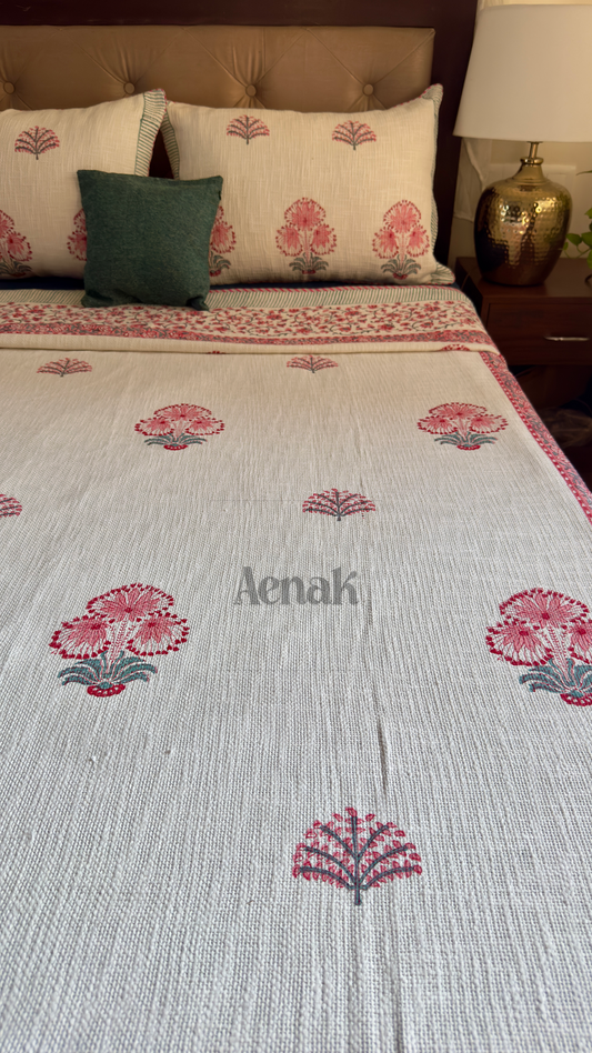 Pink Boota Handblock Printed Jute Cotton Bedcover
