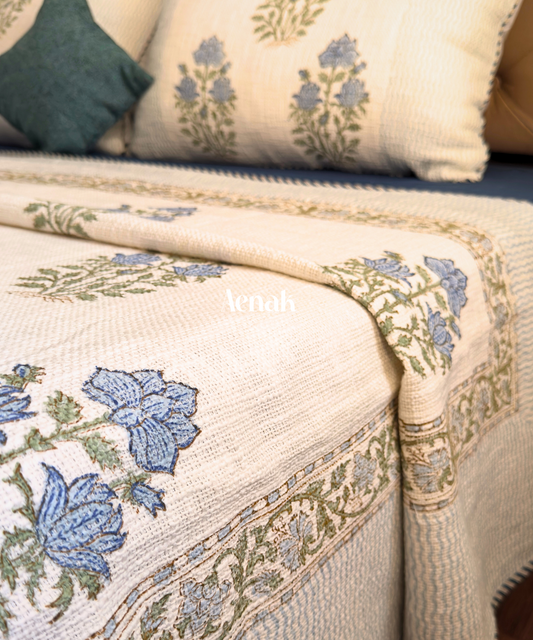 Blue Boota Handblock Printed Jute Cotton Bedcover