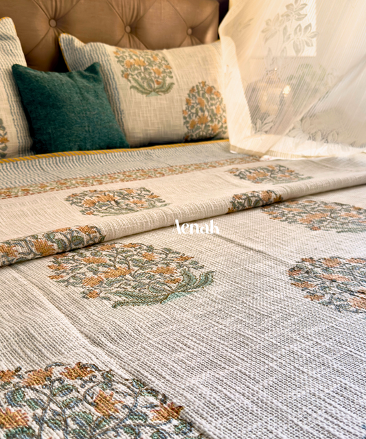 Yellow Boota Handblock Printed Jute Cotton Bedcover