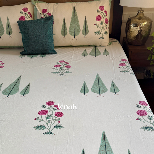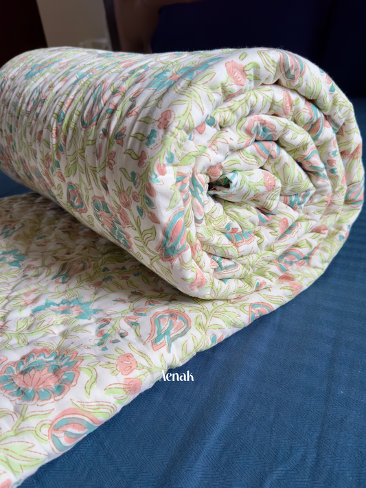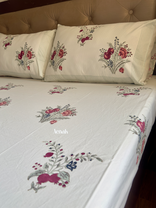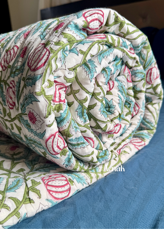 Anaar Baag Handblock Bedsheet + Quilt Combo Set