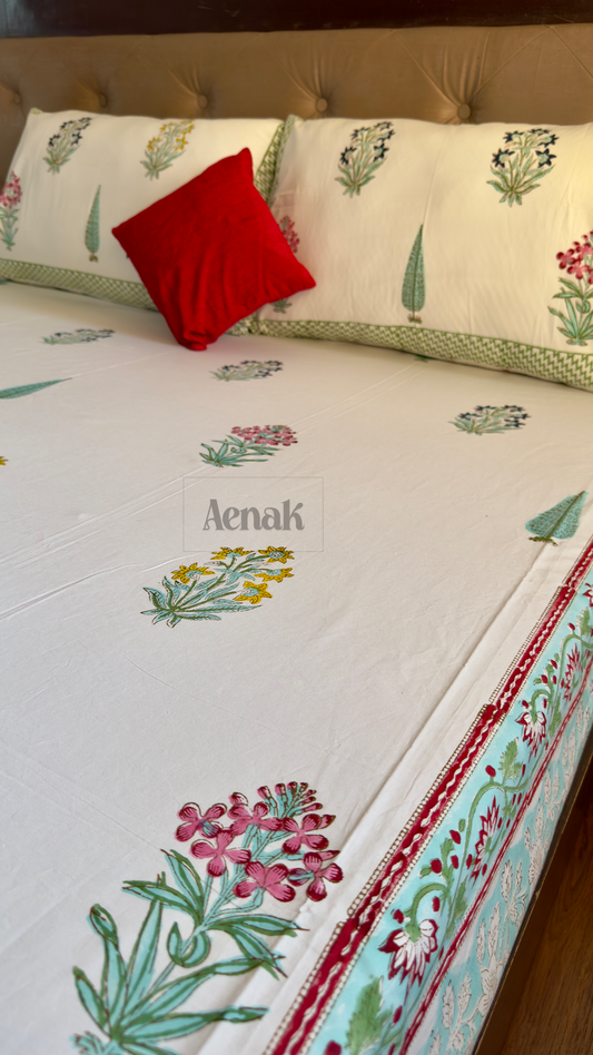 Madhumati Handblock Bedsheet + Quilted Bedcover Combo Set