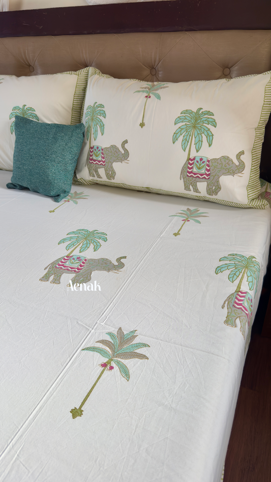 Grey Elephant Handblock Bedsheet + Dohar Combo