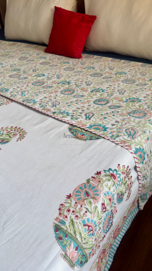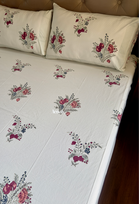 Pink Poppy Handblock Bedsheet + Dohar Combo (Non-White)