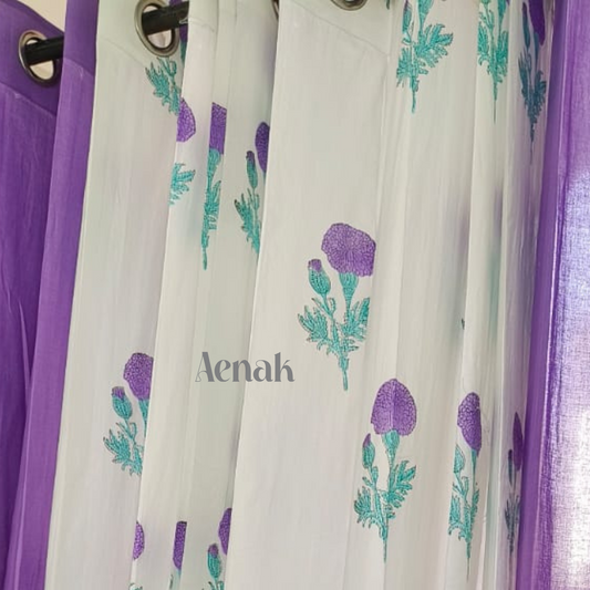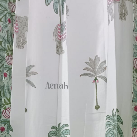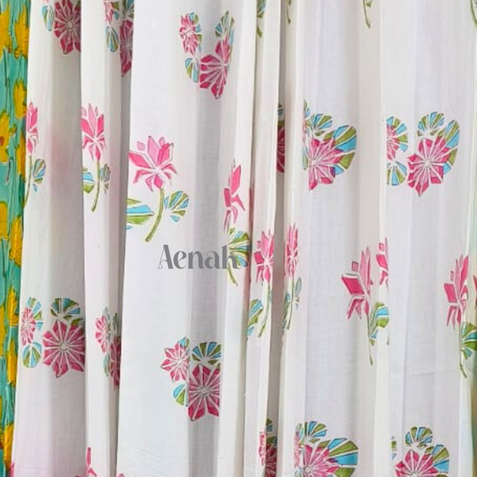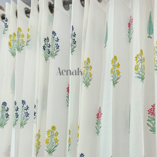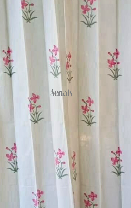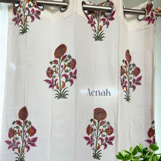 Pink & Blue Madhumati Eyelet Handblock Curtains