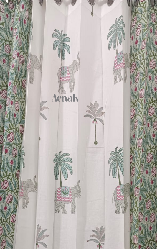 Grey Elephants Eyelet Handblock Curtains