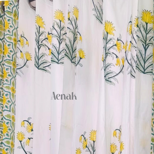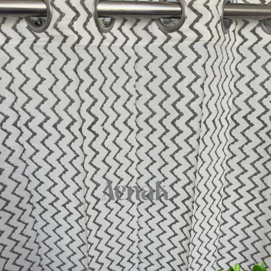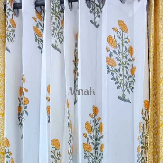 Yellow & Grey Cypress Eyelet Handblock Curtains