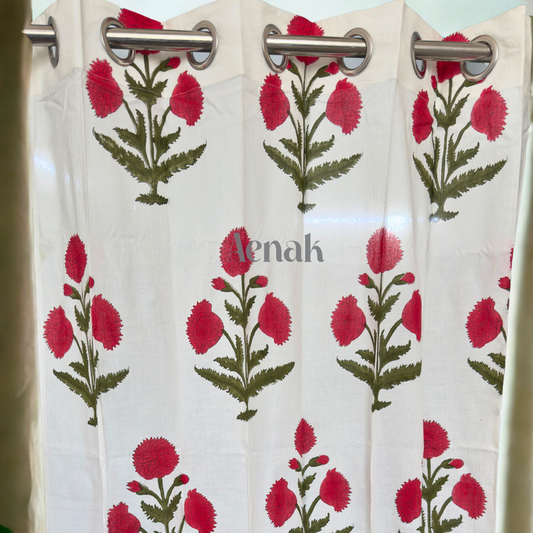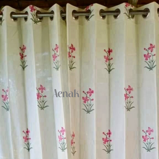 Pink Geometric Lotus Eyelet Handblock Curtains