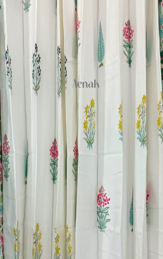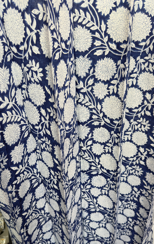 Blue Overall Floral Eyelet Handblock Curtains