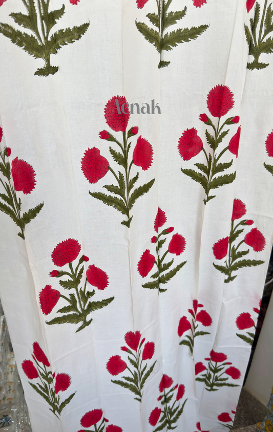 Red Dahlia Handblock Curtains