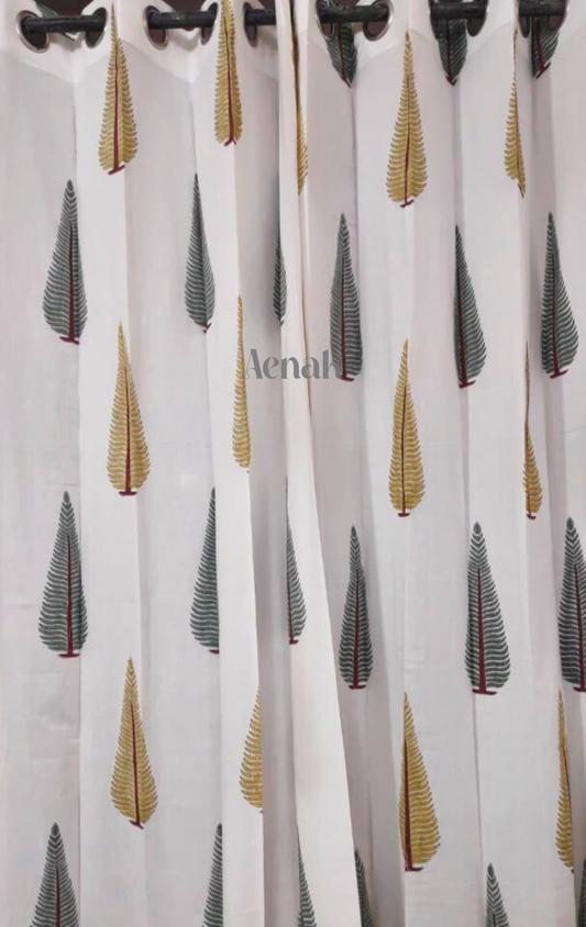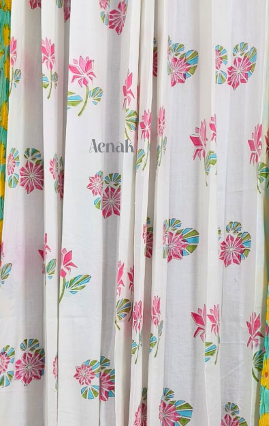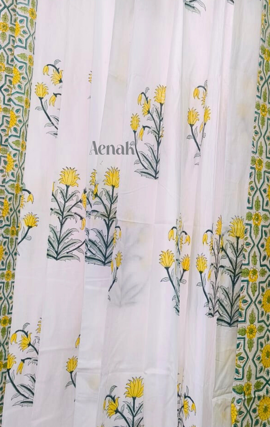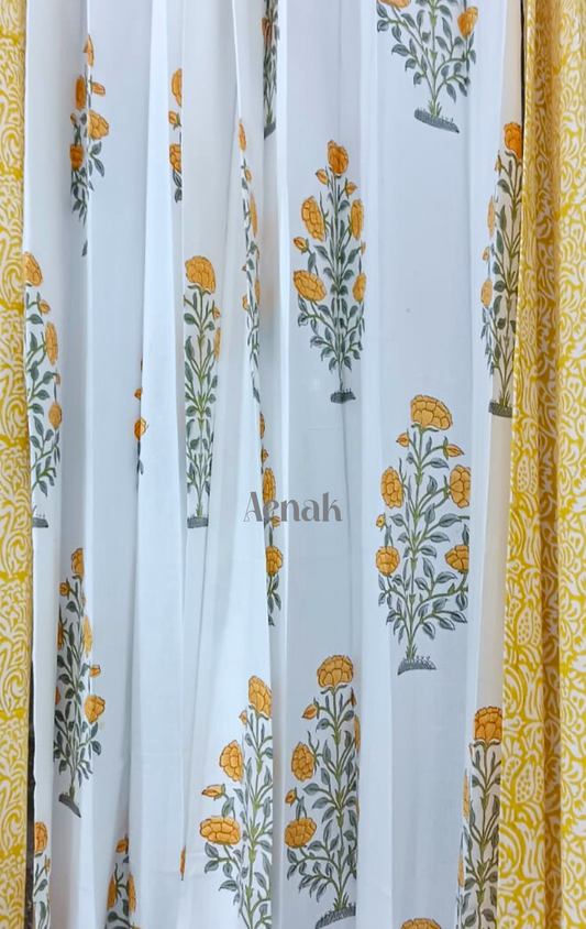 Yellow Lotus Eyelet Handblock Curtains