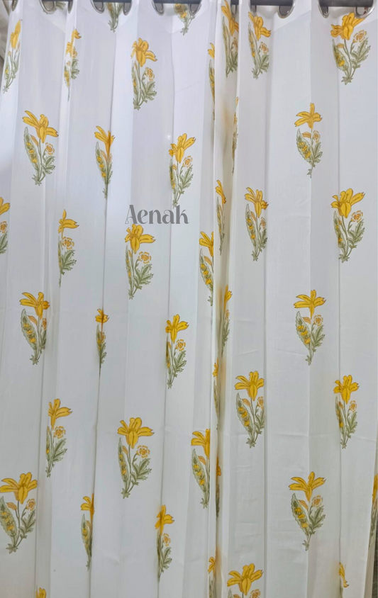 Yellow Lily Eyelet Handblock Curtains