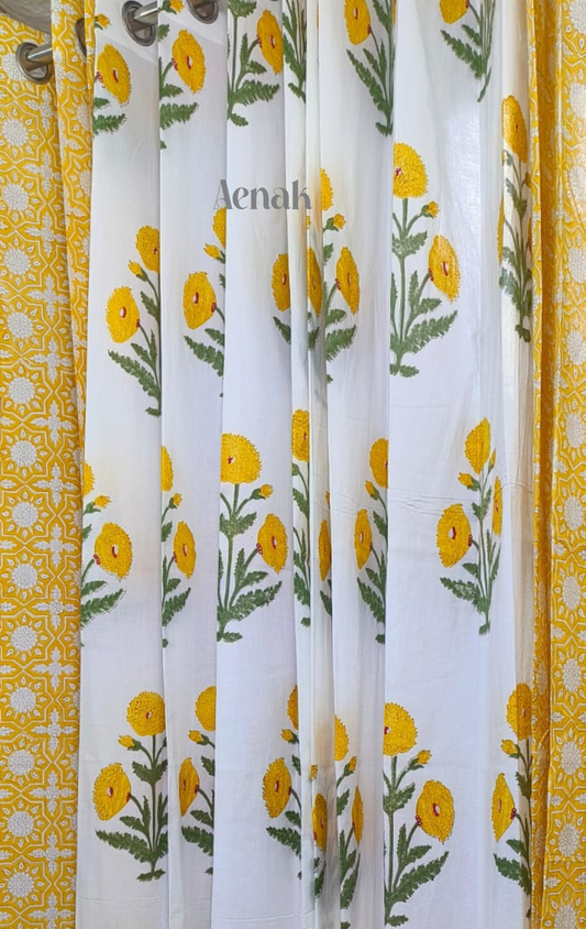 Yellow Flower Baag Eyelet Handblock Curtains
