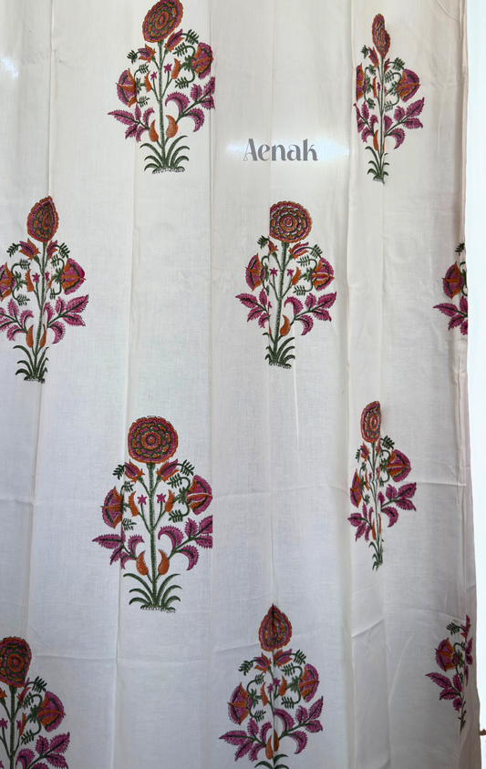 Orange & Pink Floral Eyelet Handblock Curtains