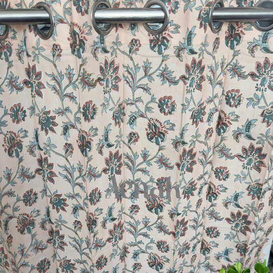Peach Floral Handblock Curtains