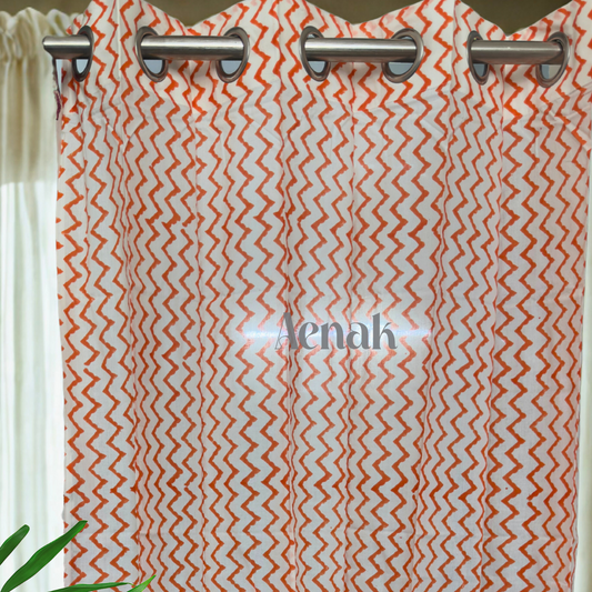 Orange Zigzag Eyelet Handblock Curtains