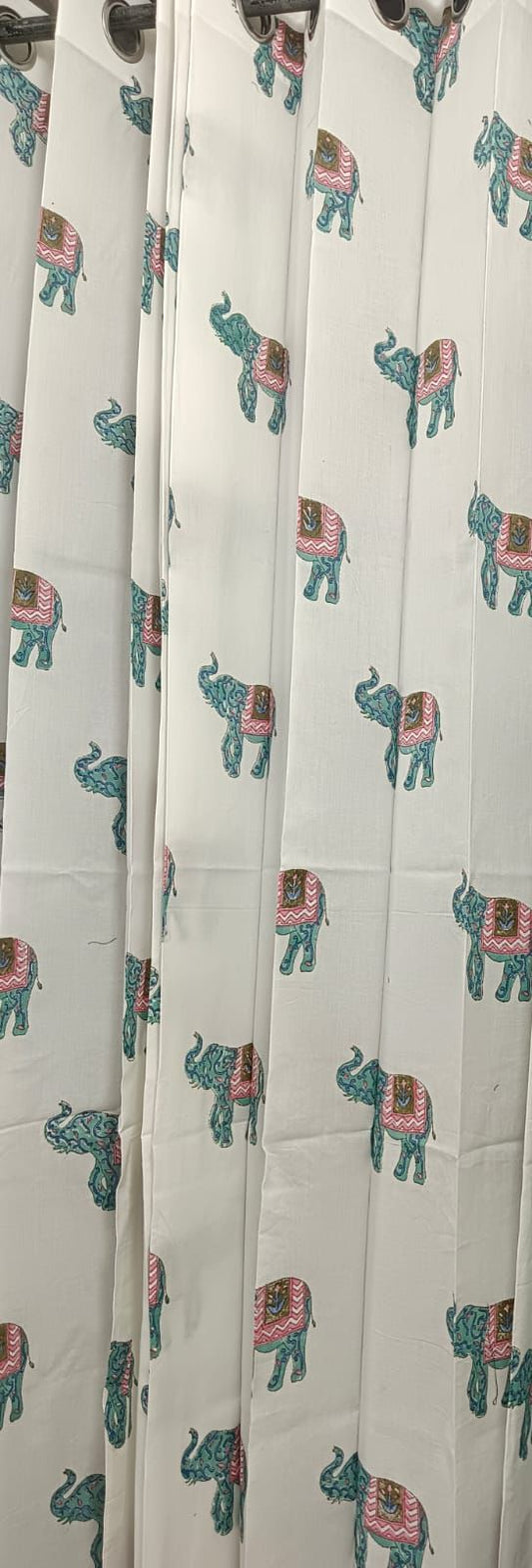 Blue Elephant Handblock Curtains