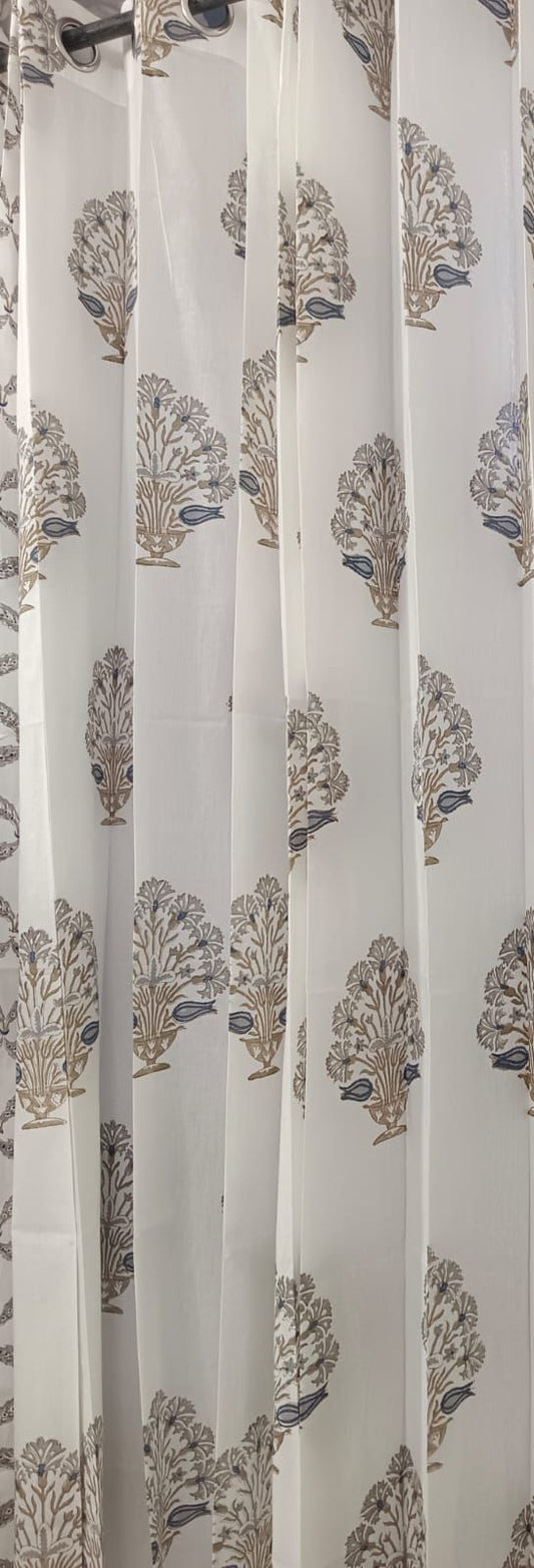 Blue Phool Handblock Curtains