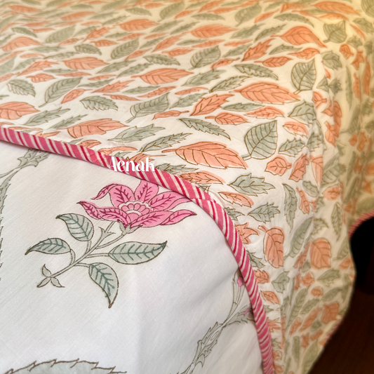 Pink Poppy Jaal Handblock Mulmul Cotton Reversible Dohar (Non-White)