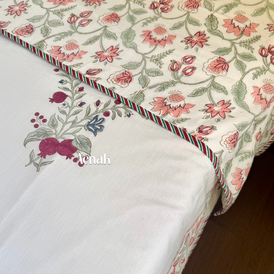 Pink Poppy Jaal Handblock Mulmul Cotton Reversible Dohar (Non-White)