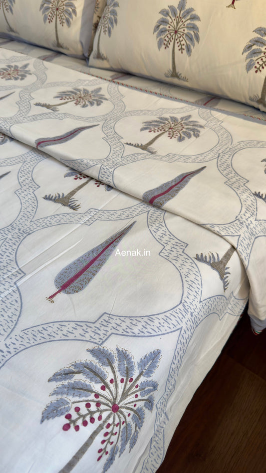 Blue Palm Jaal Handblock Mulmul Cotton Reversible Dohar