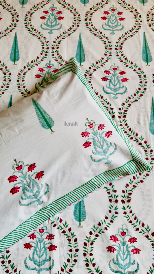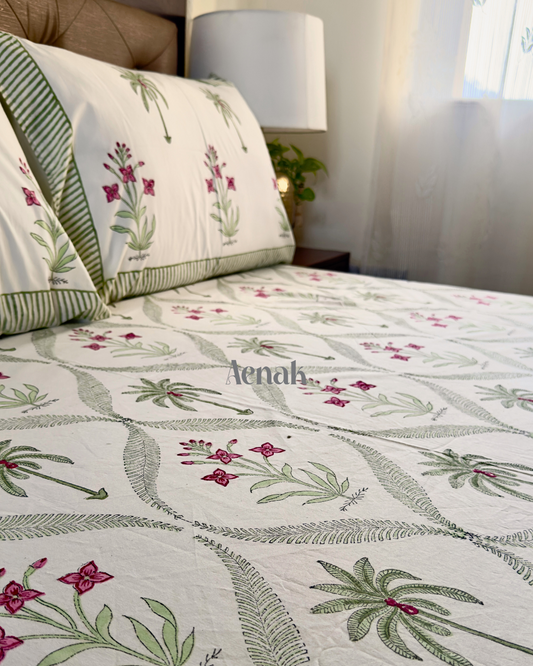 Green Palm Handblock Premium Cotton Bedsheet Set