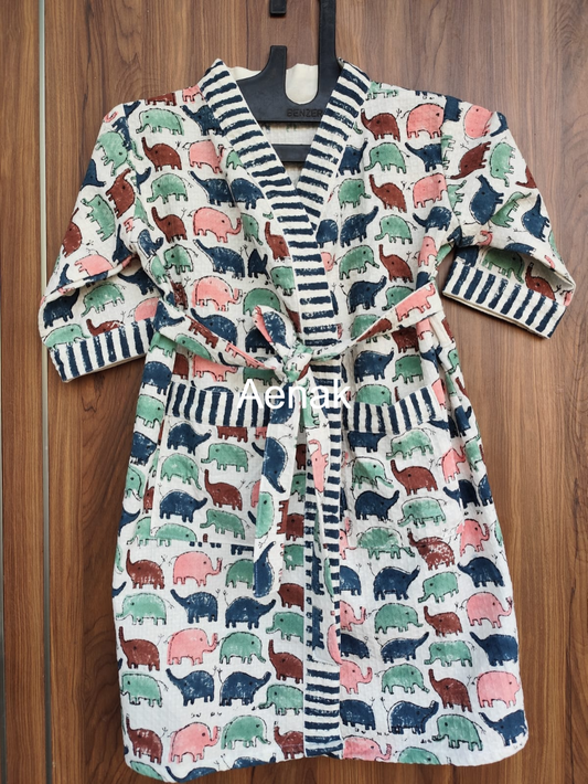 Little Haathi Handblock Cotton Bathrobe