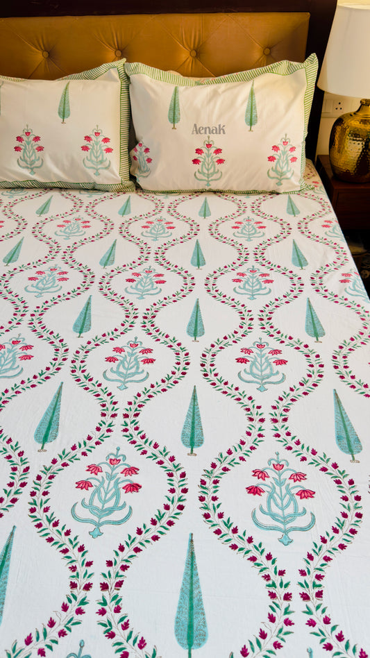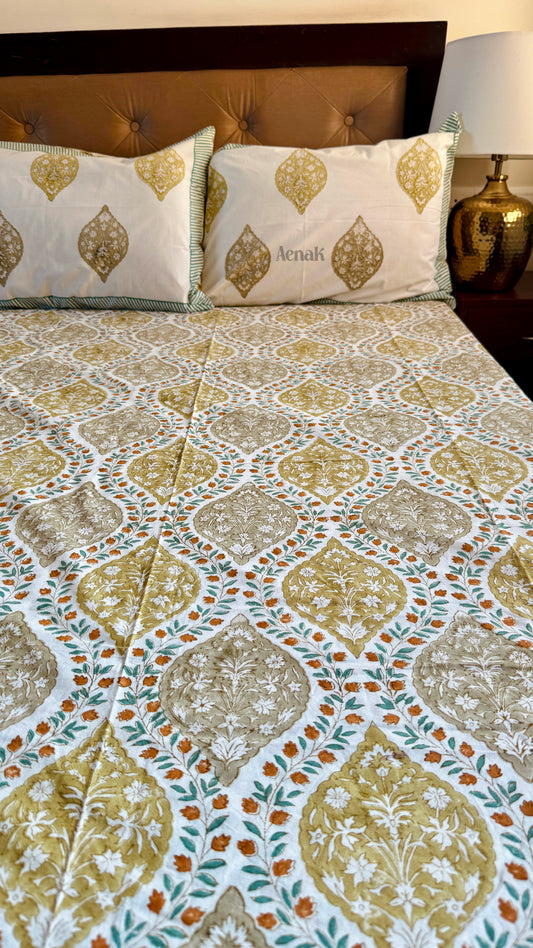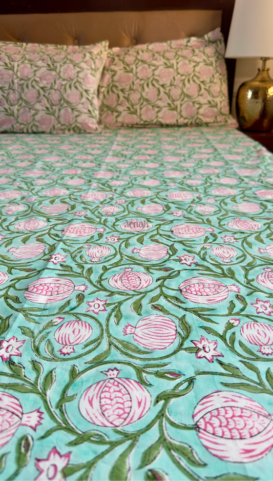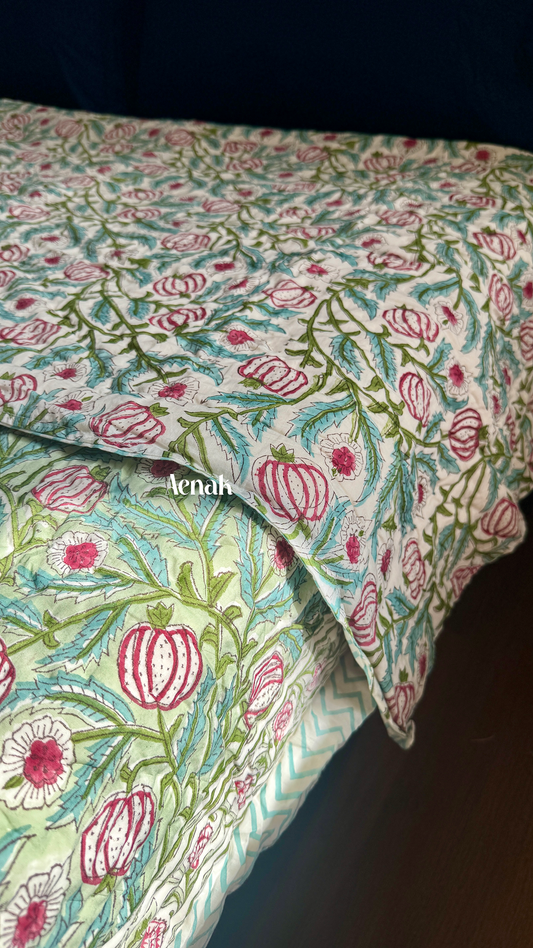 Anaar Baag Handblock Bedsheet + Quilt Combo