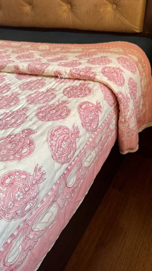 Pink Anaar Handblock Bedsheet + Quilt Combo
