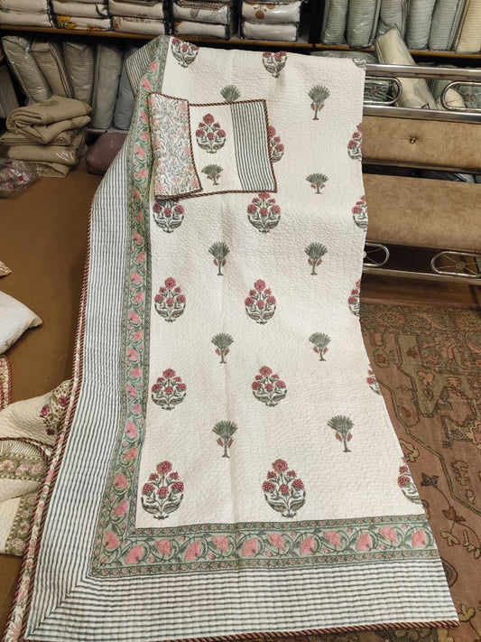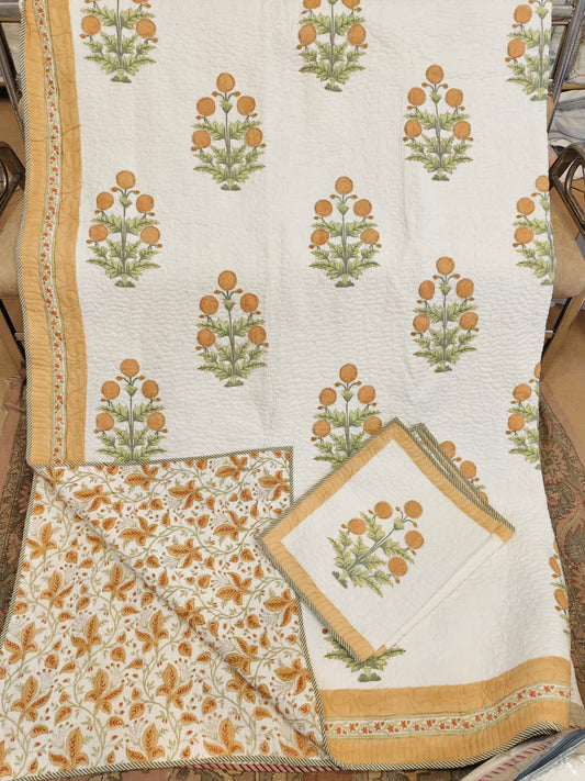 Genda Bagh Handblock Reversible Quilted Bedcover Set