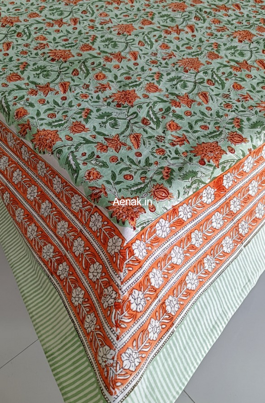 Orange Floral Garden Handblock Table Cover