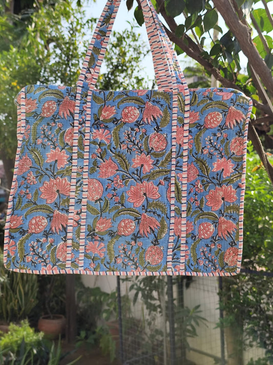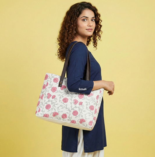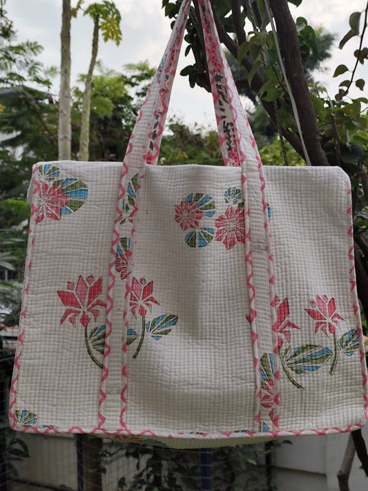Pink Floral Jaal Handblock Artisanal Handbag