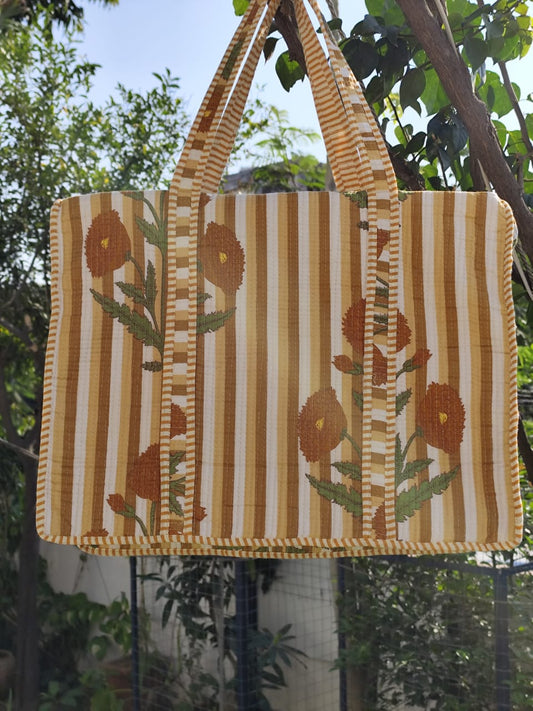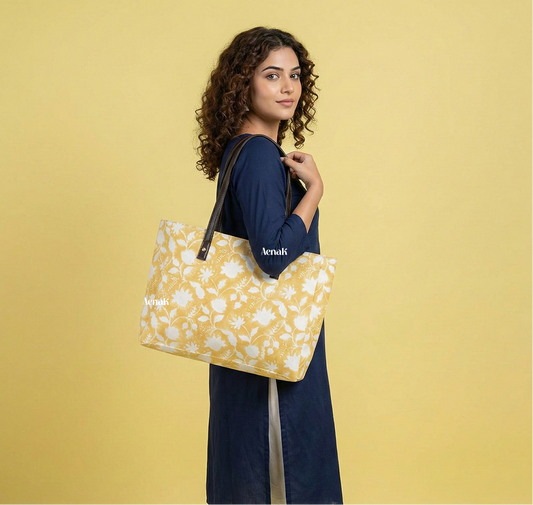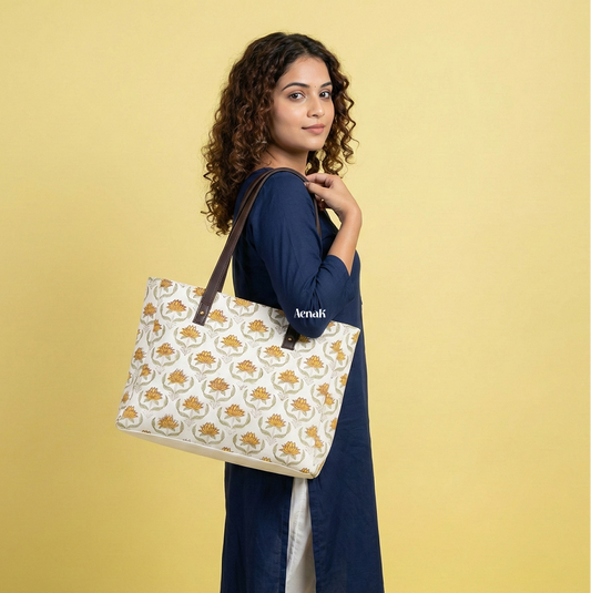 Yellow Lotus Jaal Handblock Artisanal Handbag