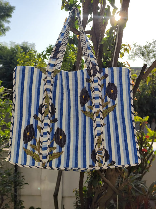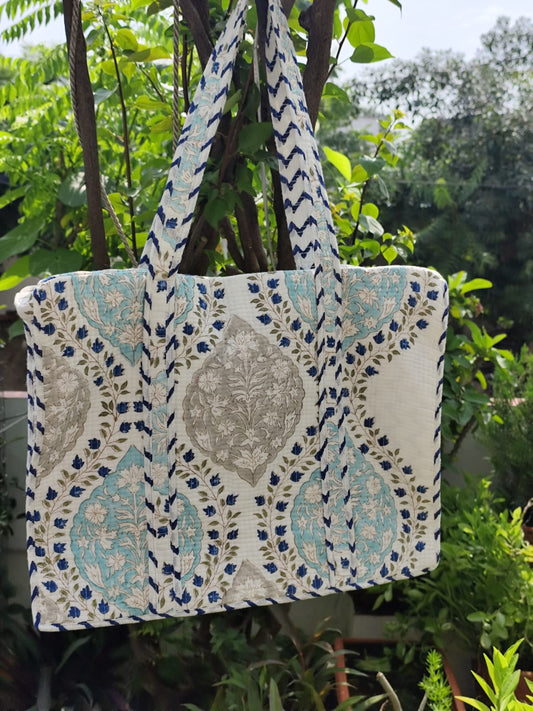 Blue Jaal Handblock Artisanal Handbag