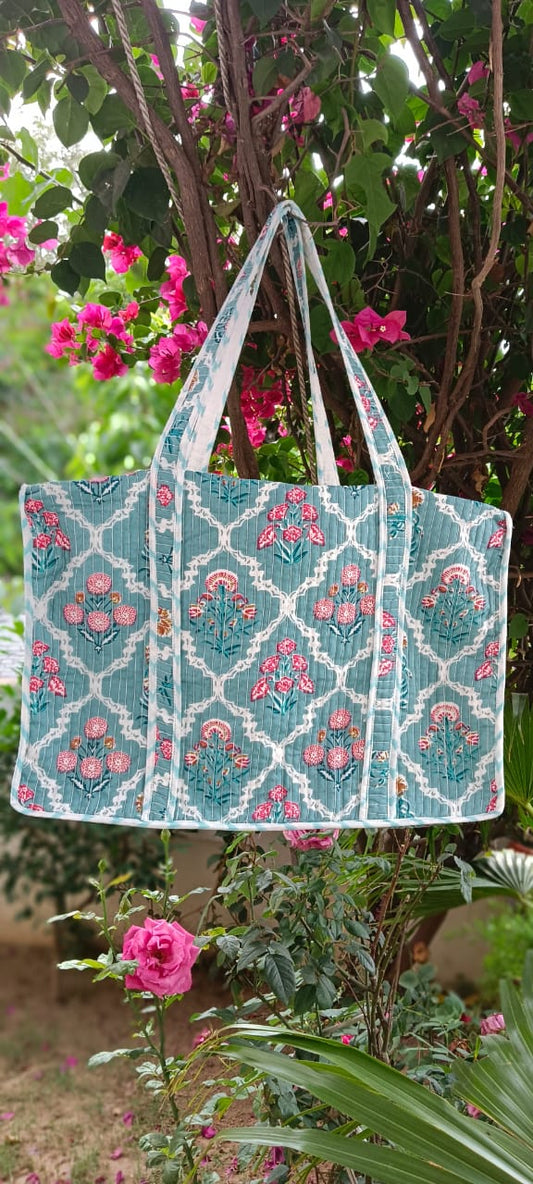 Blue Grey Jaal Quilted Cotton Zipper Travel Bag