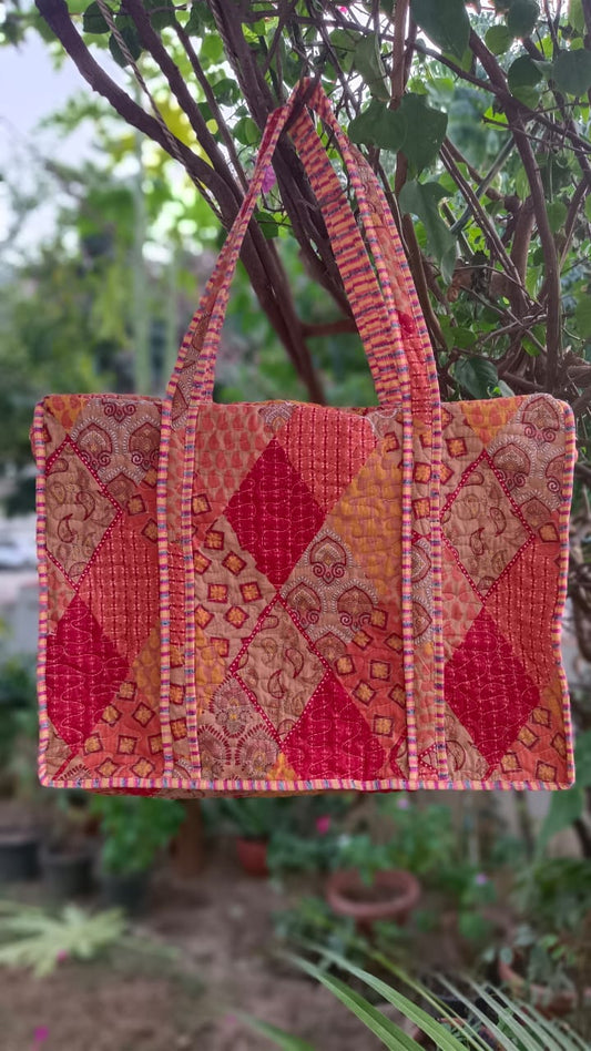 Jaipuri Quilted Cotton Zipper Travel Bag