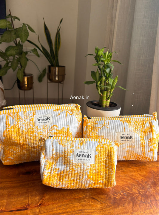 Yellow Marigold Quilted Vanity Pouches-Set of 3
