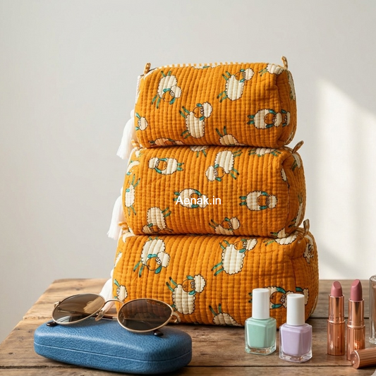 Orange Sheep Quilted Vanity Pouches-Set of 3