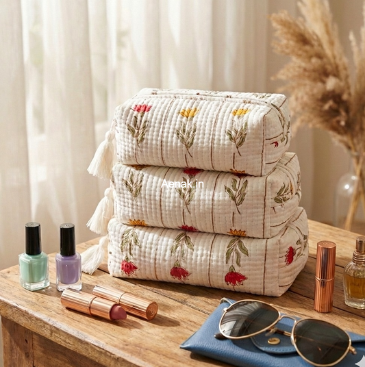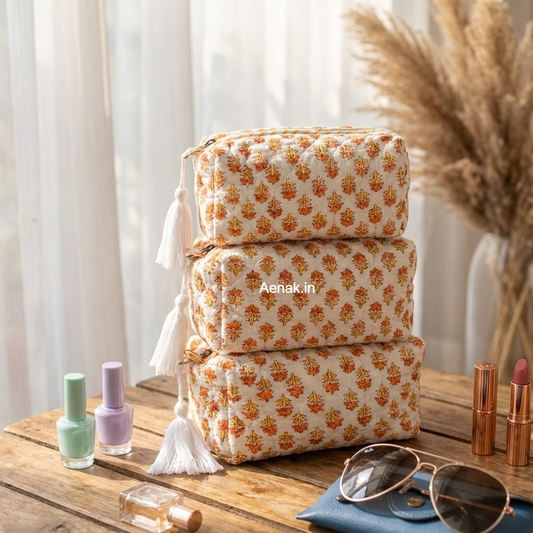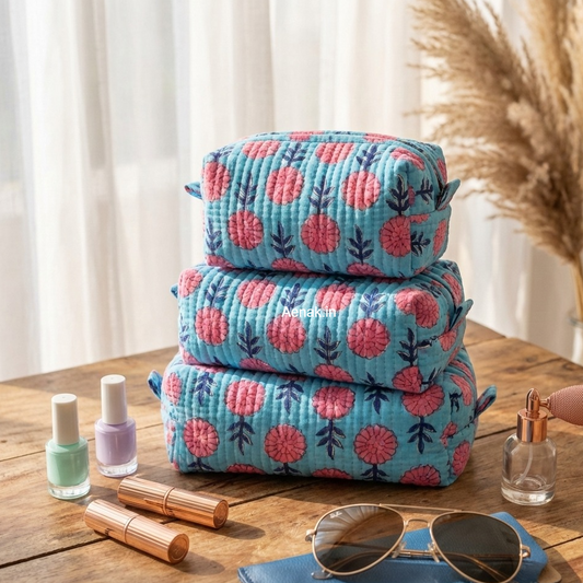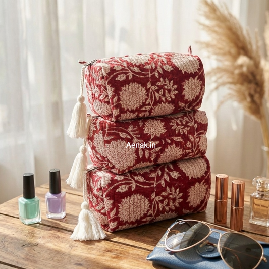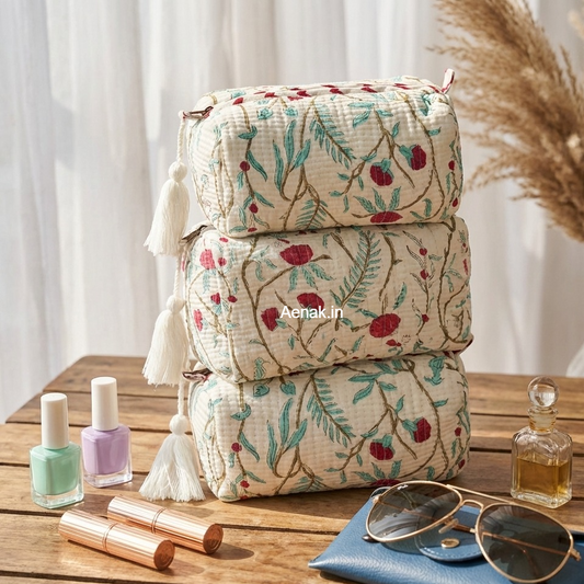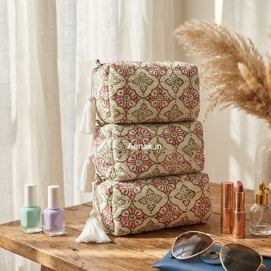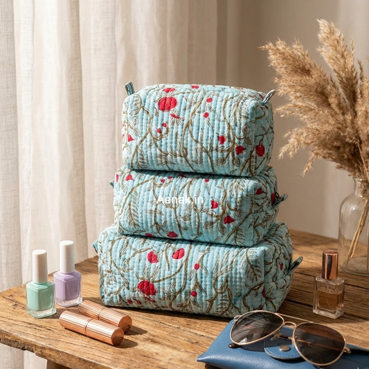 Jaipuri Bhoota Quilted Vanity Pouches-Set of 3