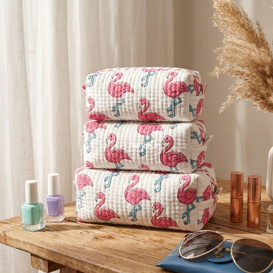 Pink Flamingo Quilted Vanity Pouches-Set of 3