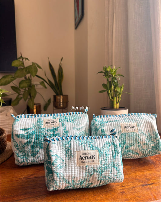 Teal Jungle Quilted Vanity Pouches-Set of 3