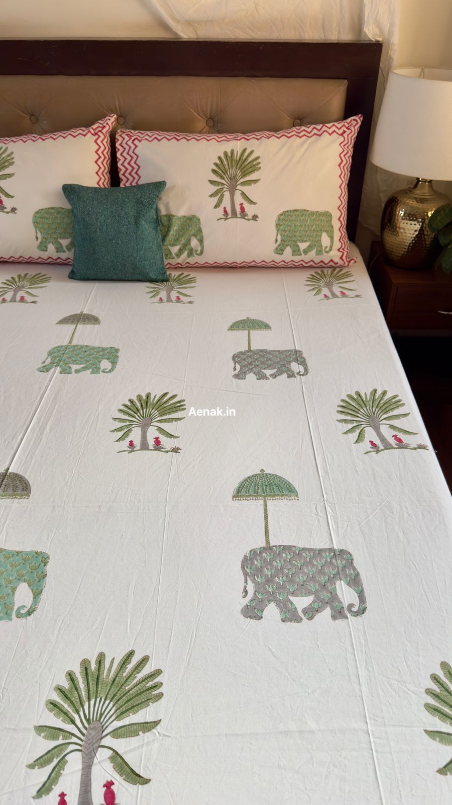 Green Elephant Handblock Premium Cotton Bedsheet Set