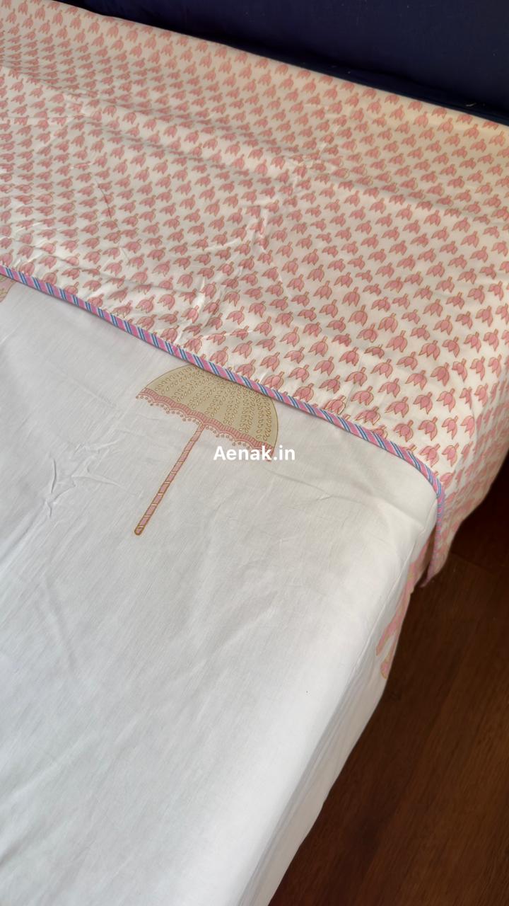 Pink Elephant Handblock Mulmul Cotton Reversible Dohar