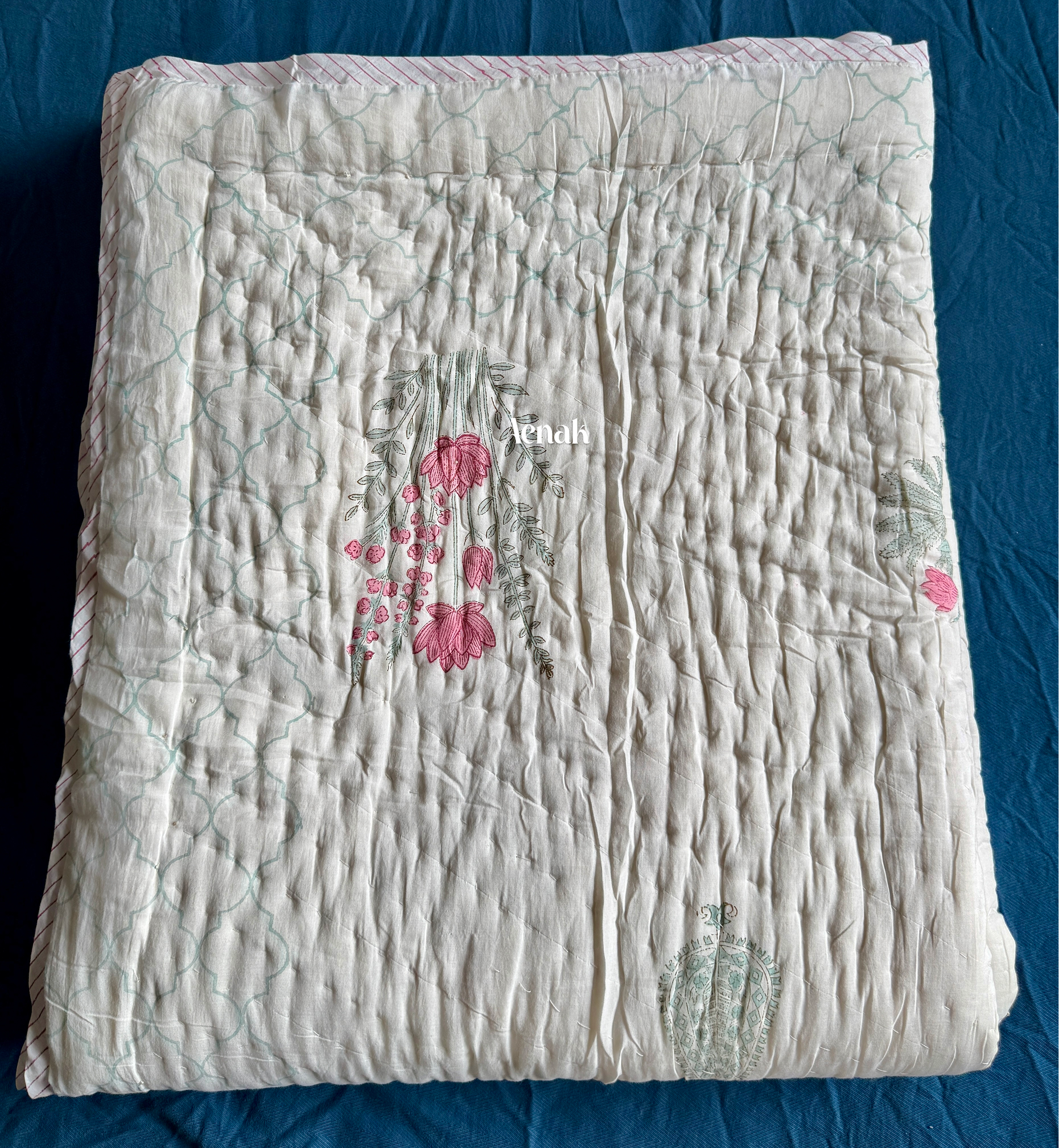 Green Ashoka Handblock Printed Reversible Mulmul Cotton Quilt